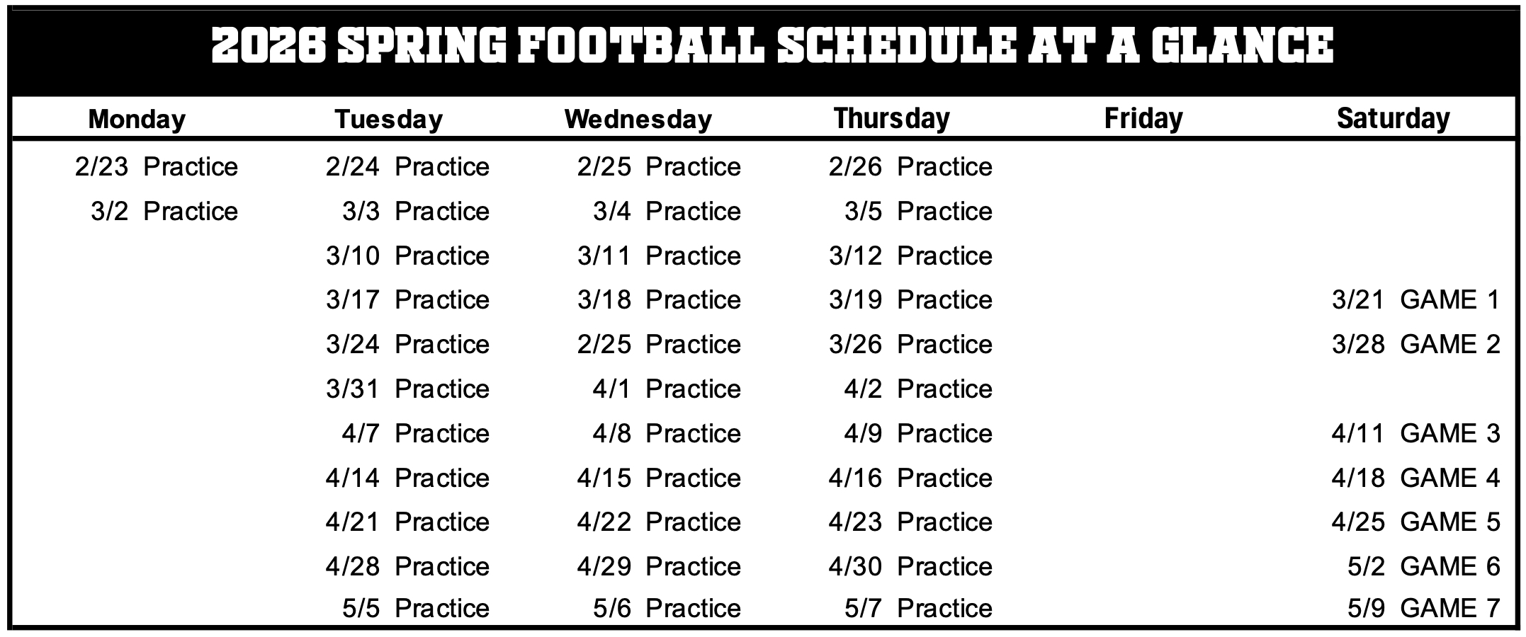 SPRING 2026 FOOTBALL SCHEDULE AT-A-GLANCE